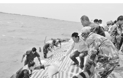 47岁的二场职工郭玉春,从管区主任那里得知场里要组织人员去一场防汛抢险,老郭来不及和家人打招呼就站到了队伍中,第二天又早早地来到集结地点,他们当中有的放下需要照顾的子女,有的放下正在营业的饭店,有的放下家中需要照看的病弱老人,无怨无悔也无所求地奔赴抢险一线,堤坝上从早上7点一直奋战到晚上6点,湖水泡烂了脚,胳膊晒塌了皮,腿上被蚊虫叮出了包,没有一个人叫苦喊屈。