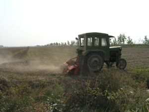 图片说明:省农垦潘村湖农场充分发挥农业机械化 优势,积极支援地方农业生产,农场在获得一定的 经济效益同时,也创造了显著的社会效益。图为农 场机手正在乡镇农田作业进行旋耕整地作业的情 景。(杨登宏摄)